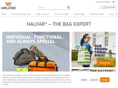 Aprašymas: HALFAR® is one of the leading manufacturers of bags and backpacks for promotional purposes as well as technical bags and products.