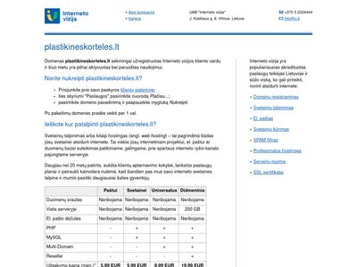 Tinklalapio pavadinimas: plastikineskorteles.lt – Domenai, domenų registravimas – UAB „Interneto vizija”