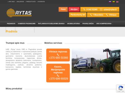Tinklalapio pavadinimas: Padangos, Kameros, Akumuliatoriai, Ratlankiai, Žarnos | UAB Rytas