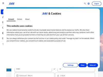 Aprašymas: <p>SAS offers cheap flights to Scandinavia, Europe, Asia and North America. Book your flight today on flysas.com</p>