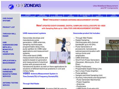 Aprašymas: Geozondas develops and manufactures pulse generators, UWB antennas, sampling oscilloscopes for UWB radar applications and measurement systems.