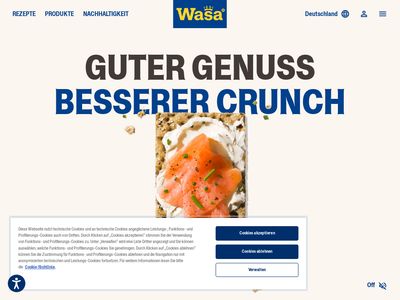 Aprašymas: Wasa ist seit 1919 das größte Knäckebrot Bäckereiunternehmen weltweit und verkauft Produkte in über 40 verschiedenen Ländern. 1999 wurde Wasa mit vielen anderen Bäckerei-Marken wie zum Beispiel Harry\’s, Pavesi und Mulino Bianco Teil der Barilla Group. Es gibt Wasa Bäckereien in Filipstadt (Schweden) und Celle (Deutschland). An diesen Standorten backen wir unser Knäckebrot und andere Bäckereiprodukte für viele Länder auf der Welt. Die größten Märkte außerhalb von Schweden sind die anderen nordischen Länder, Deutschland, Polen, Niederlande, Frankreich und die USA.